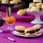 Tradizione vorrebbe che venissero farciti con una sorta di panna densa, la clotted cream, insieme ad una confettura di fragole, ma sono buoni anche con del patè o del prosciutto o, meglio, con burro e salmone o burro e acciuga!